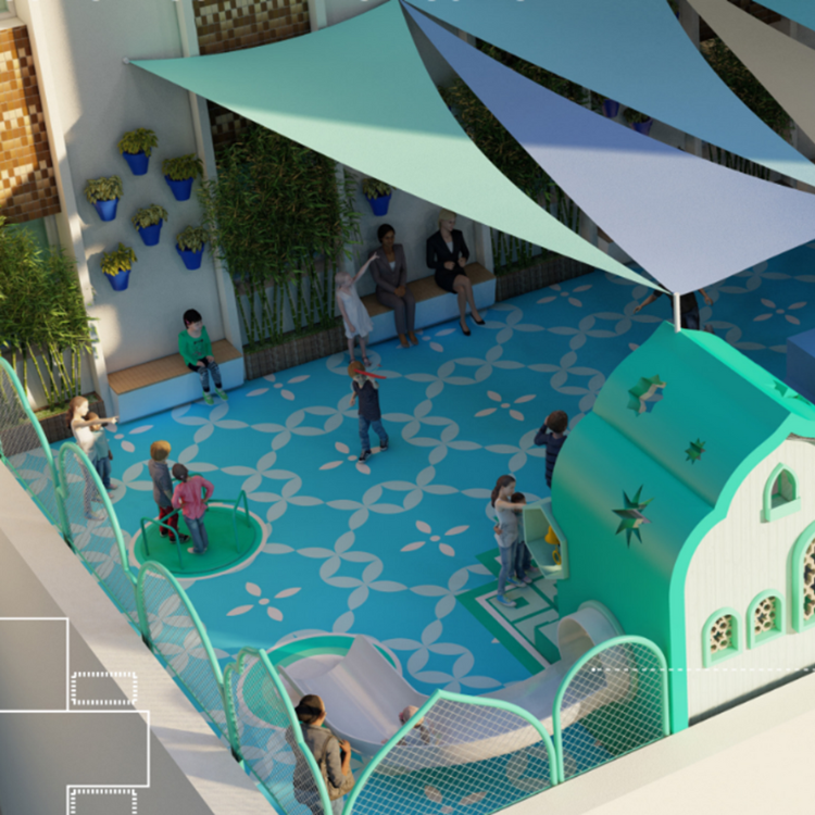 Una de las terrazas será un espacio polivalente para actividades lúdicas y deportivas. Las otras dos estarán centradas en juegos convencionales tipo columpios y otros elementos de juego interactivos.